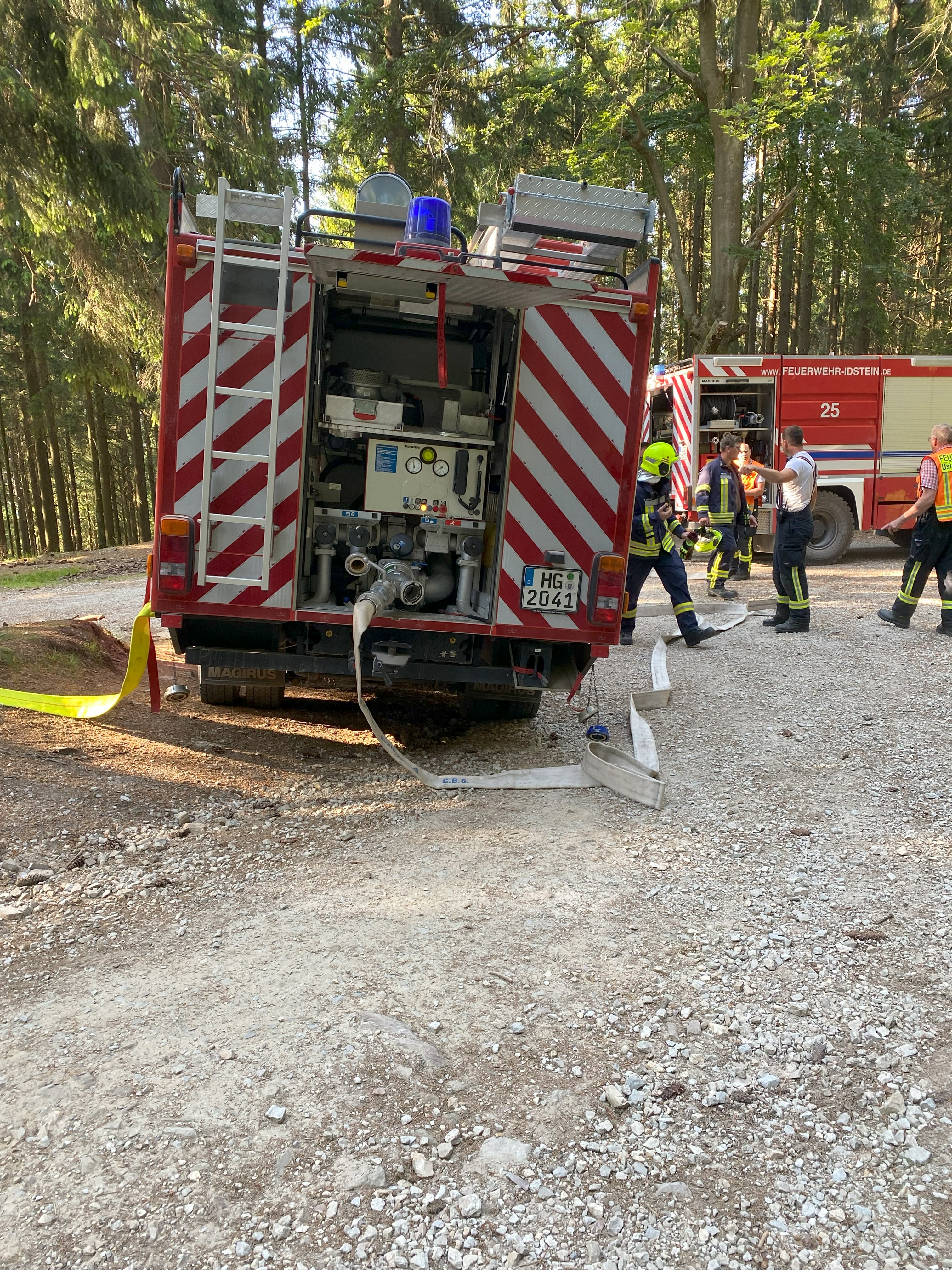 Vor Ort wurden wir am Brandabschnitt 2 auf dem Altkönig gemeinsam mit den Wehren aus u.a. Friedrichsdorf und Kronberg eingesetzt. Wir unterstützten mit unserem LF 8/6 als Einspeisepunkt für die eingesetzten Tanklöschfahrzeuge und bekämpften den Brand am Altkönig auf rund 800 Höhenmetern, nachdem wir Schlauchmaterial und sonstige Gerätschaften zur Freilegung von Schneisen noch oben geschafft hatten. Nach Aufbau der Löschwasserversorgung lag der Schwerpunkt dann auf dem Ablöschen von Glutnestern und dem weiteren Eindämmen des Brands.