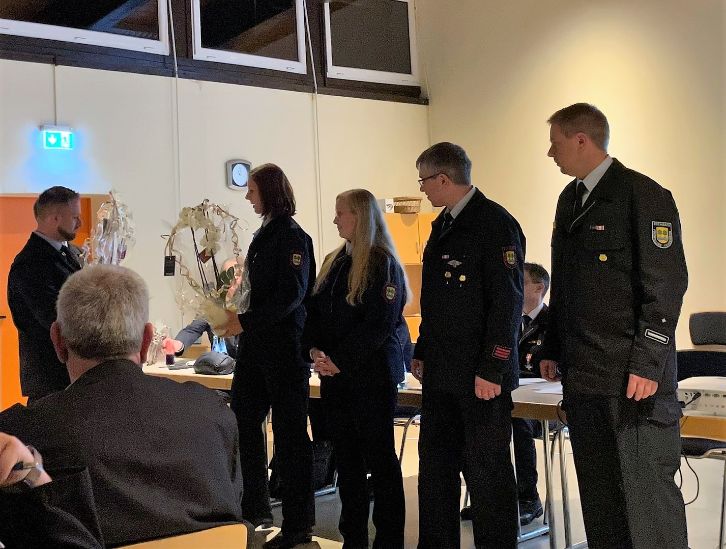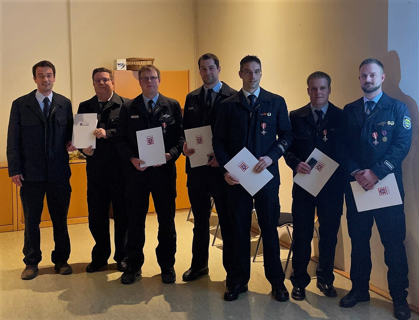 Im Rahmen der JHV wurden auch Kameraden für langjährige Vereinszugehörigkeit bzw. langjährige Mitgliedschaft in der Einsatzbabteilung geehrt und Beförderungen nach abgeschlossenen Lehrgängen vorgenommen. Marcelo Schweikert und Alexander Meyer wurden zum Feuerwerhmann befördert. Für Moritz Berg, Daniel Böhmer und Steffen Böhmer gab es das silberne Brandschutzabzeichen für 25 Jahre aktiven Einsatzdienst. Für 15-jährige Vereinszugehörigkeit wurde Frank Kleinschmidt und für 50 Jahre Reiner Kaul geehrt.