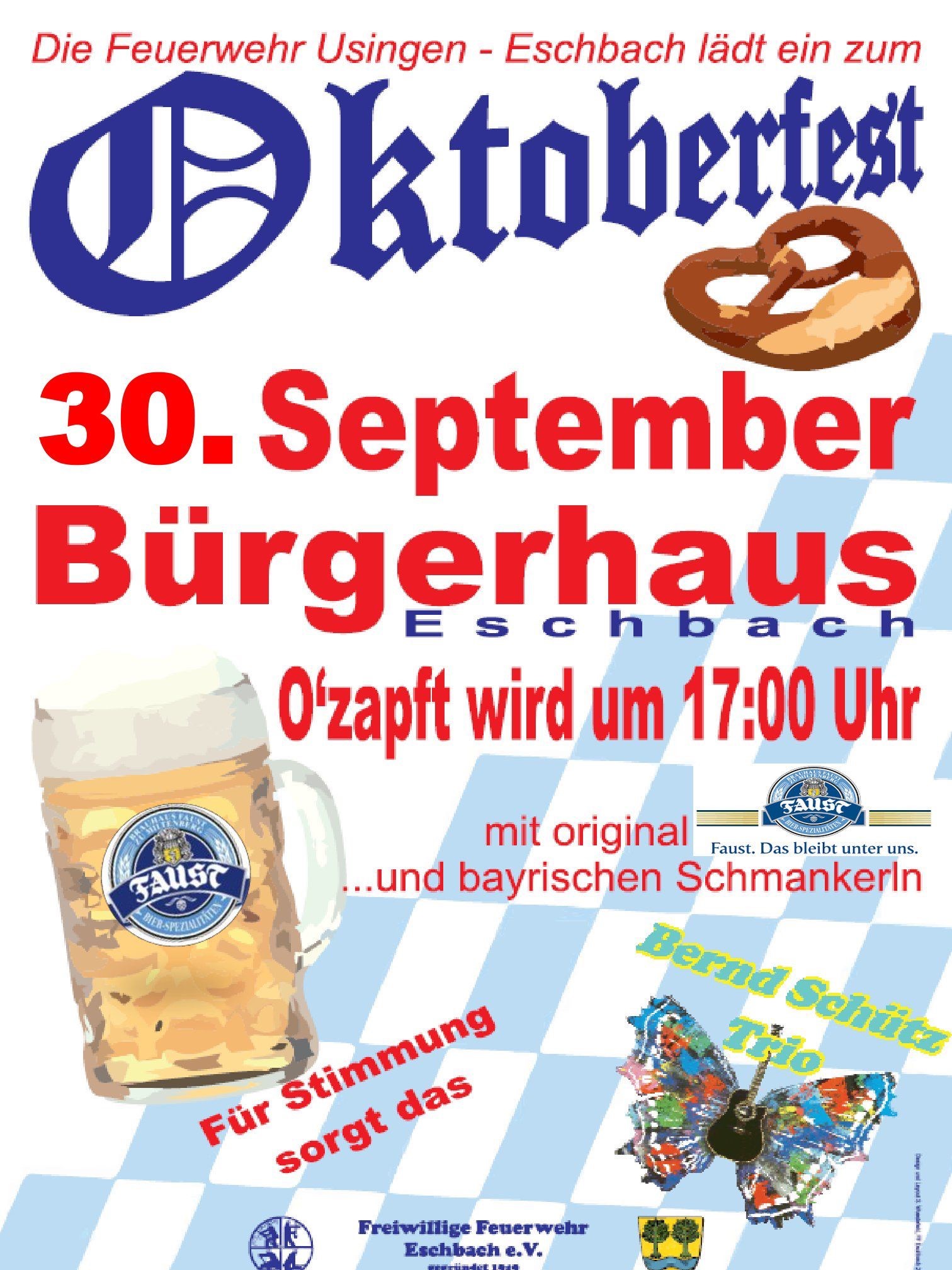 Zum 29. Mal findet am Samstag, den 30. September das Oktoberfest, ausgerichtet durch die Freiwillige Feuerwehr, in Eschbach satt.