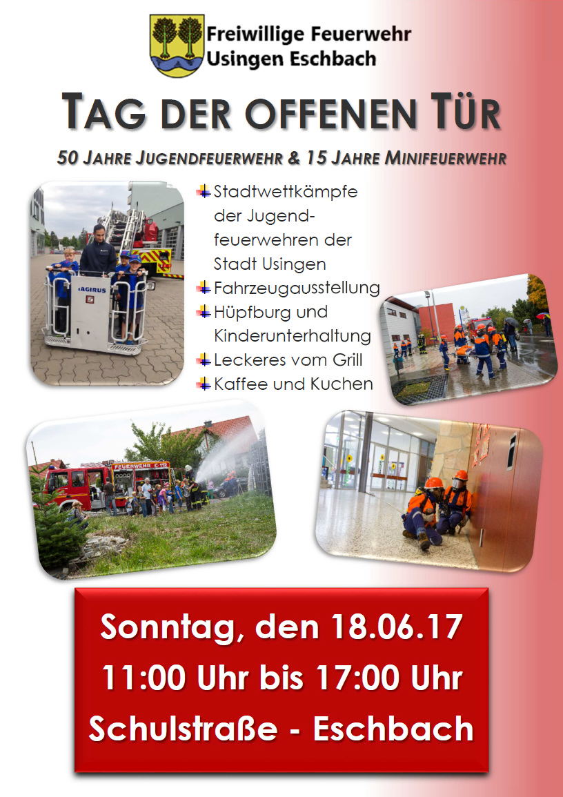 Die Feuerwehr Eschbach lädt am 18.06.17 ab 11 Uhr zu einem Tag der offen Tür ein.